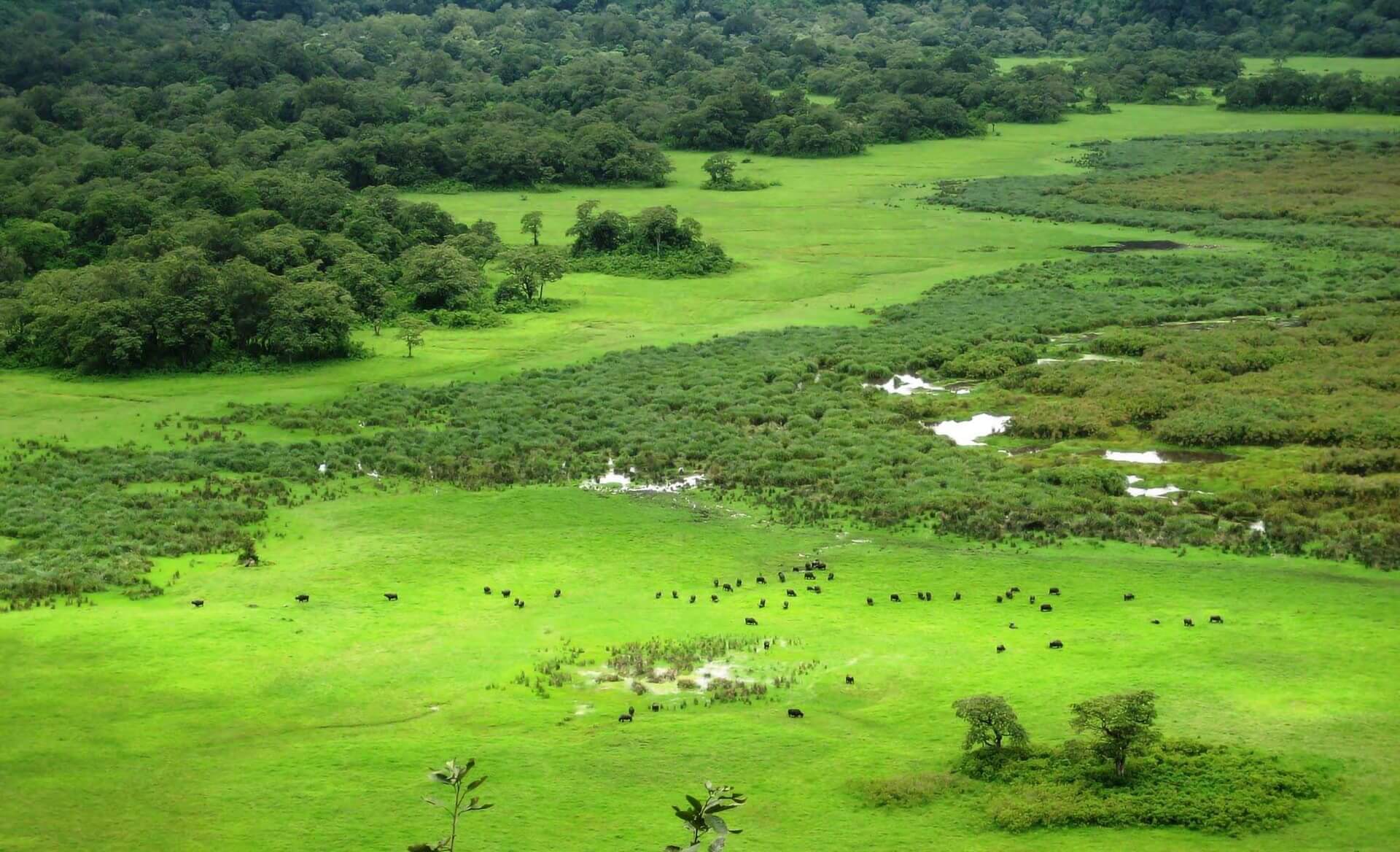 The Momella Lakes provide a sanctuary for hippos and a variety of waterbirds, including flamingos, pelicans, and herons. In the open grasslands, visitors may encounter elephants, waterbucks, and bushbucks grazing peacefully.
